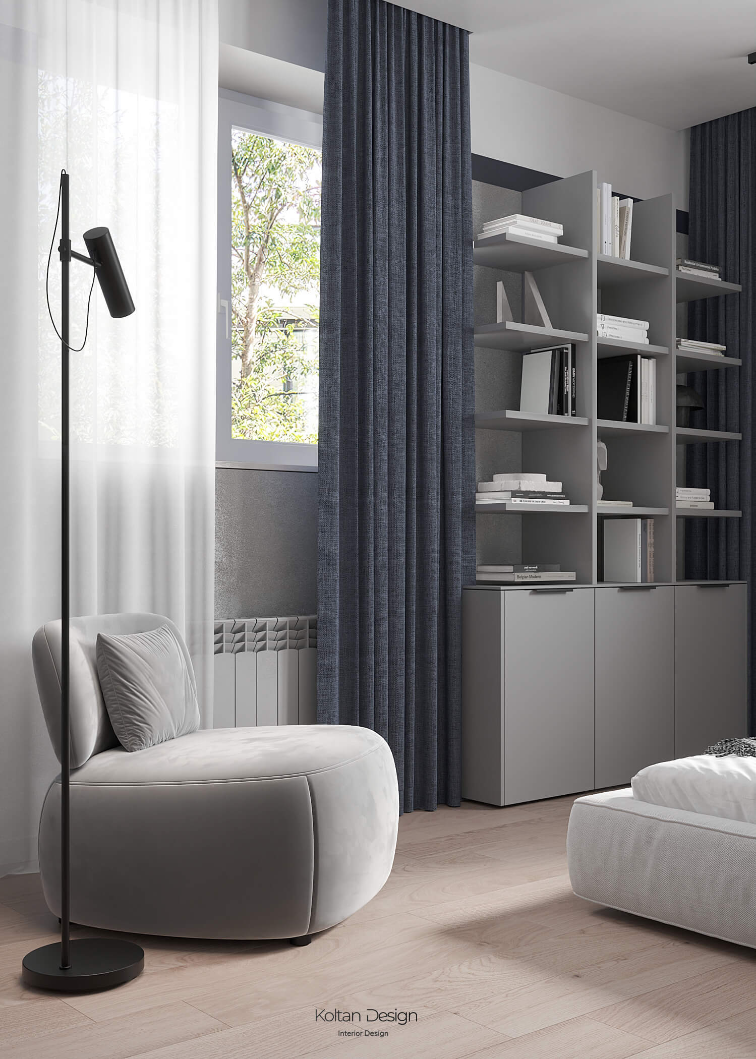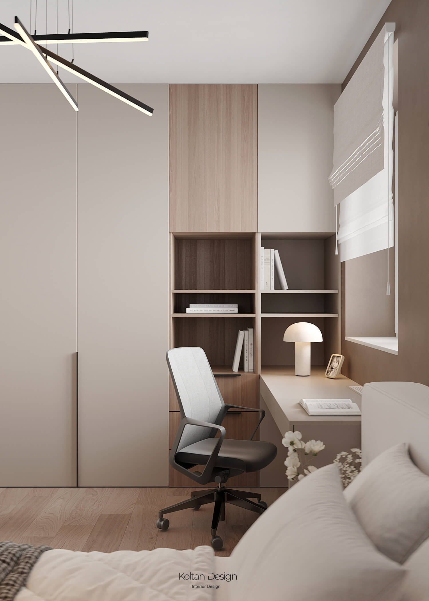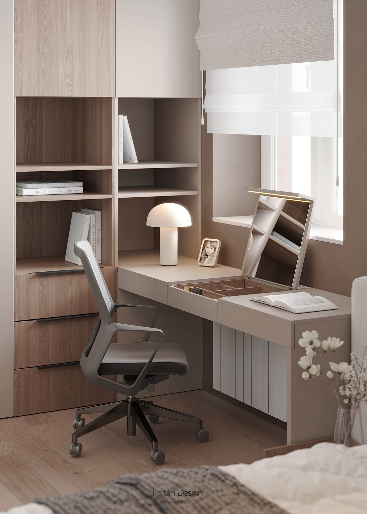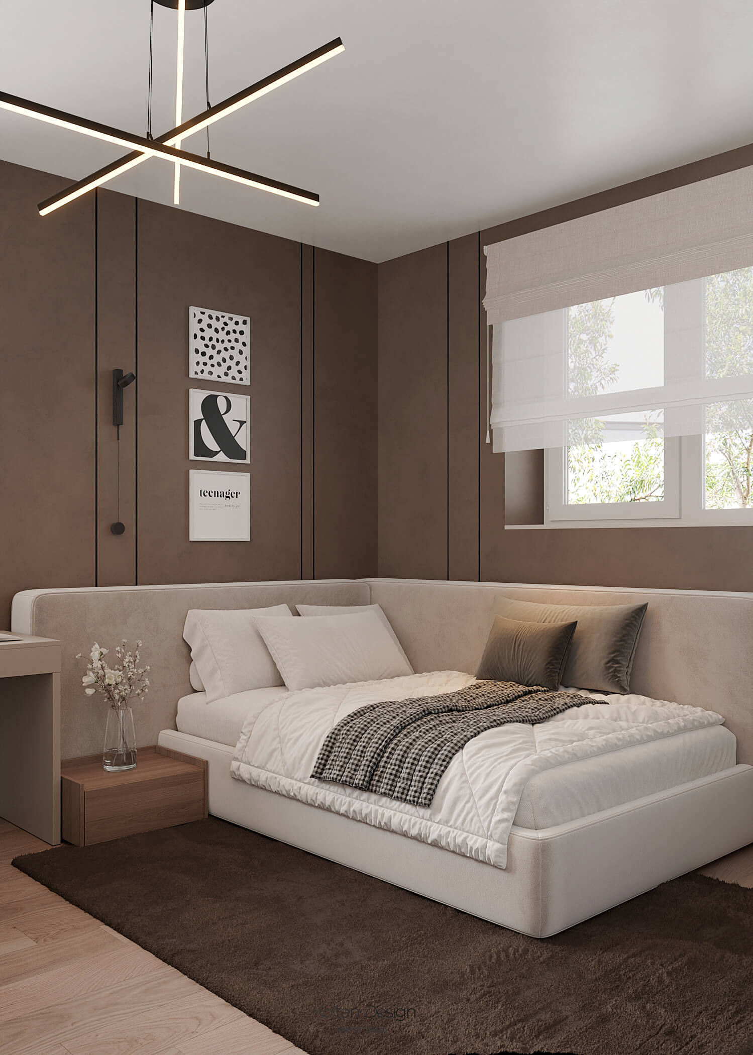 Каждое помещение проработано индивидуально: в комнате сына предусмотрены системы хранения для книг и коллекций, а интерьер комнаты дочери выполнен в отдельной цветовой гамме по её пожеланиям