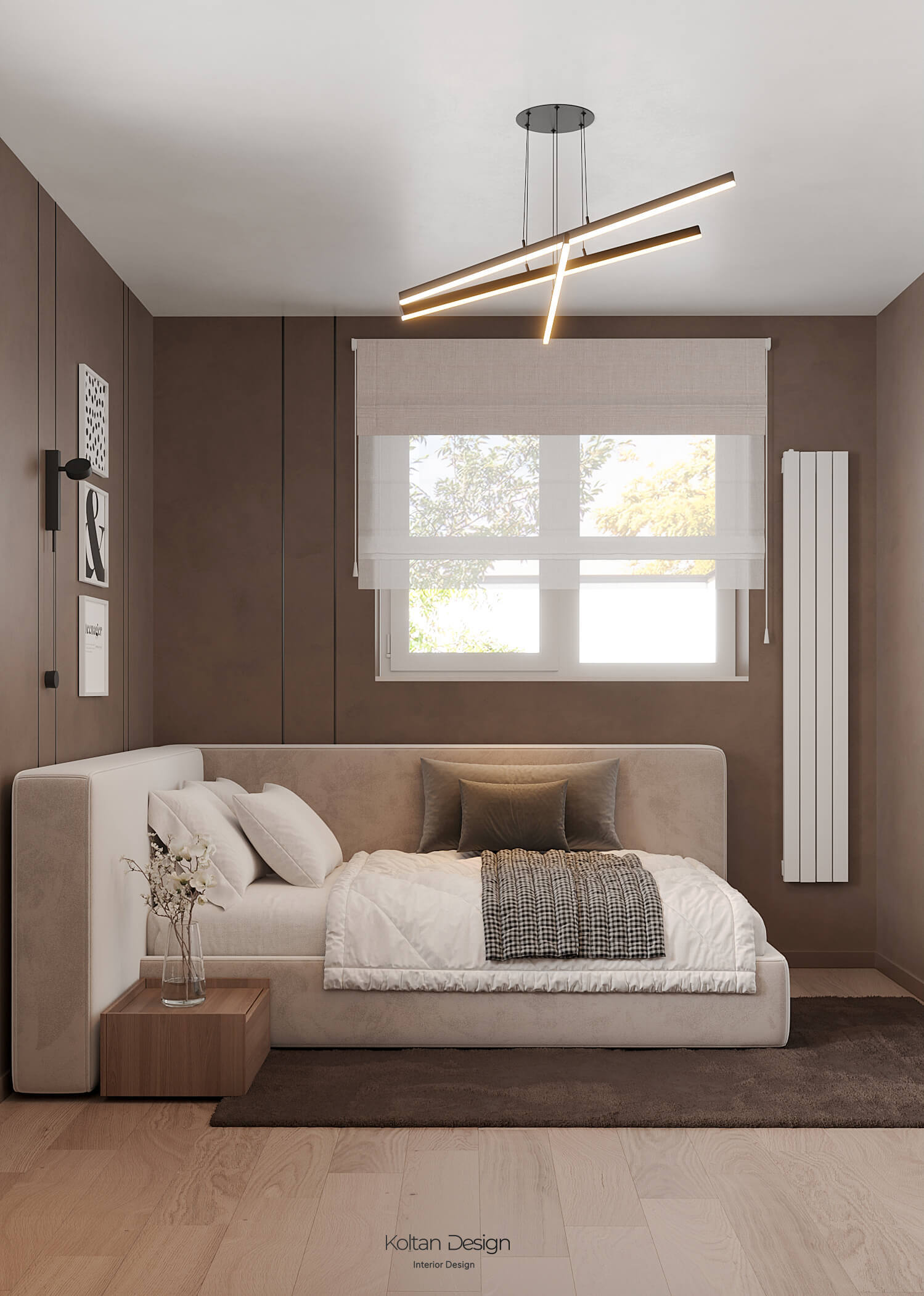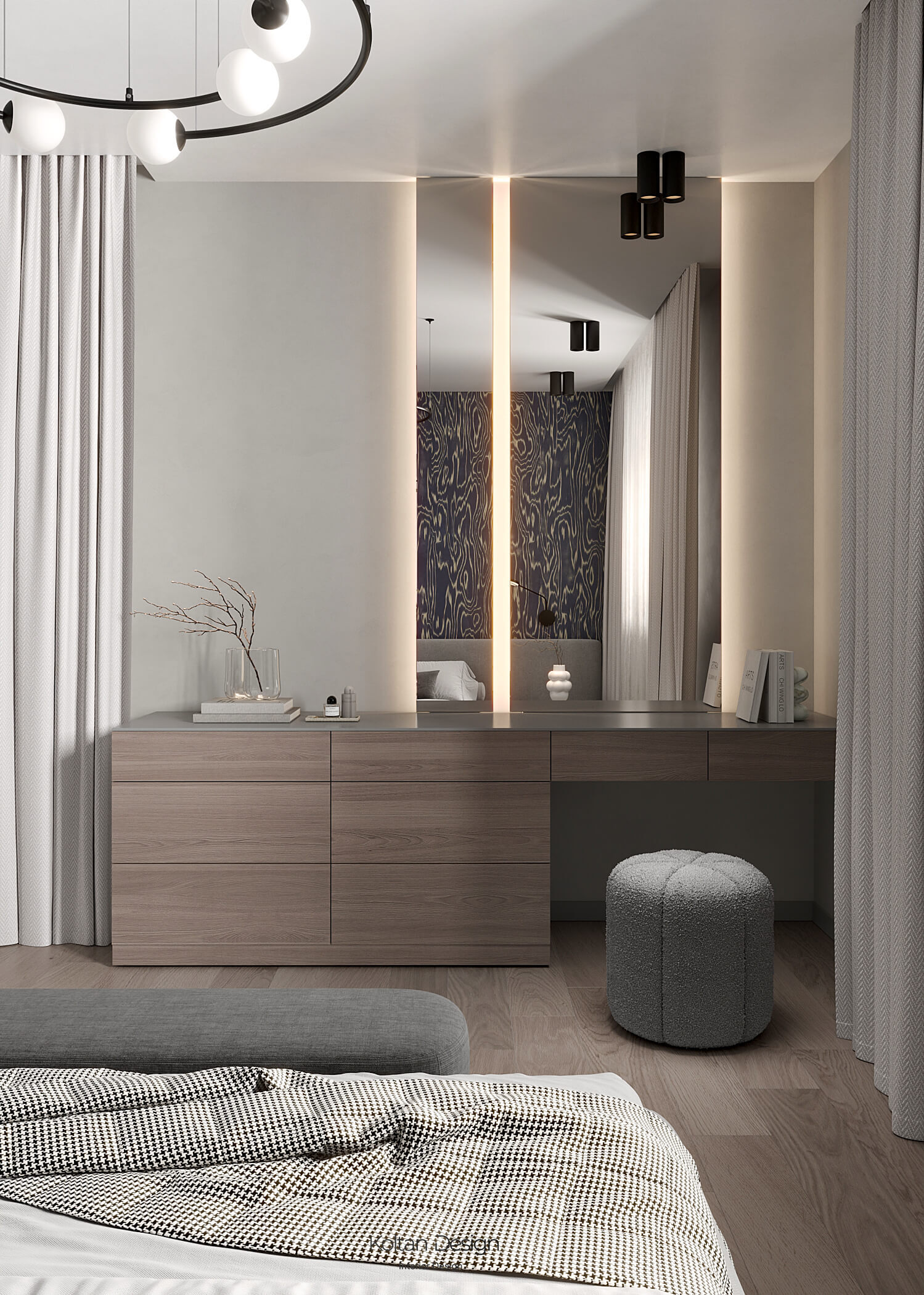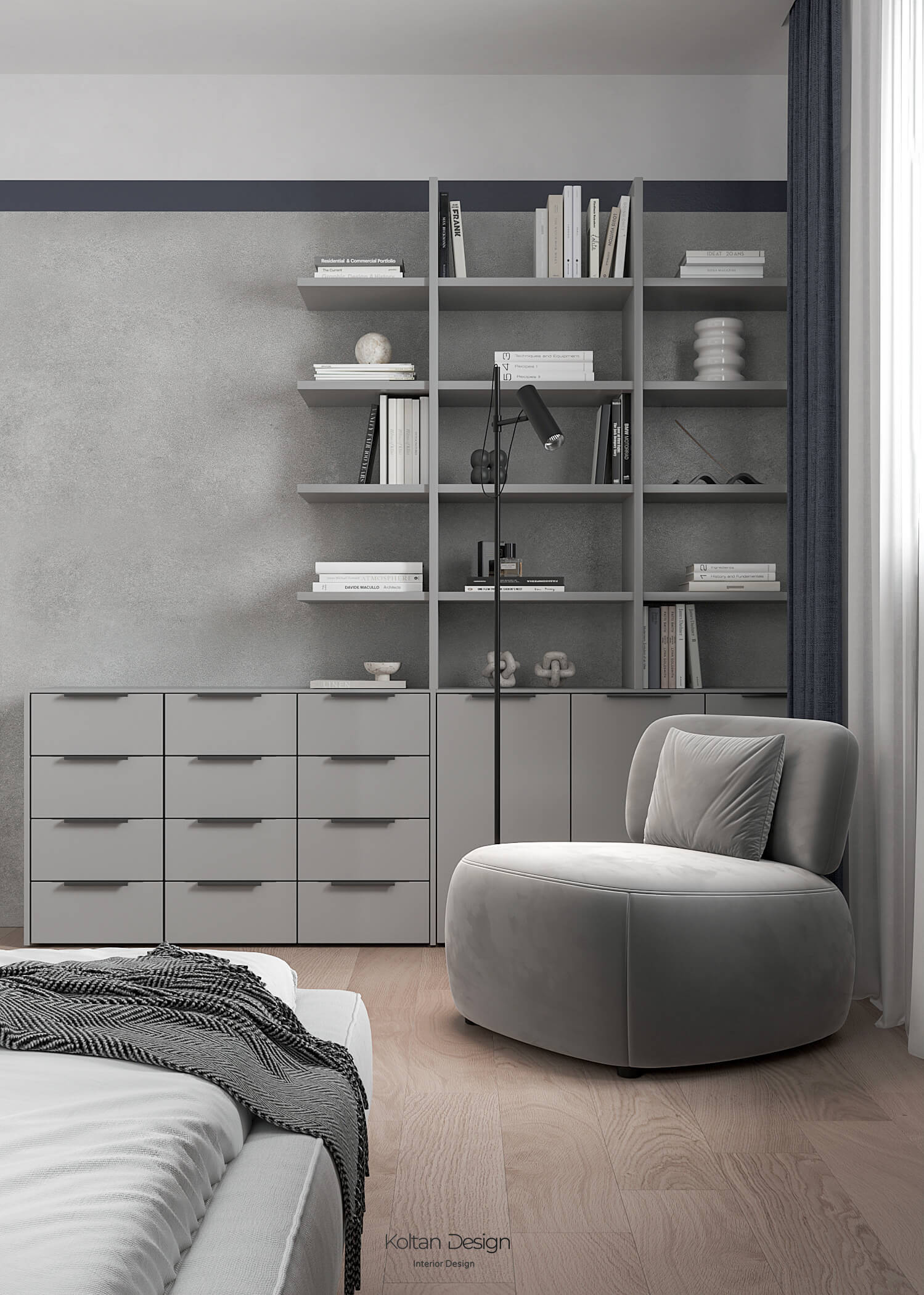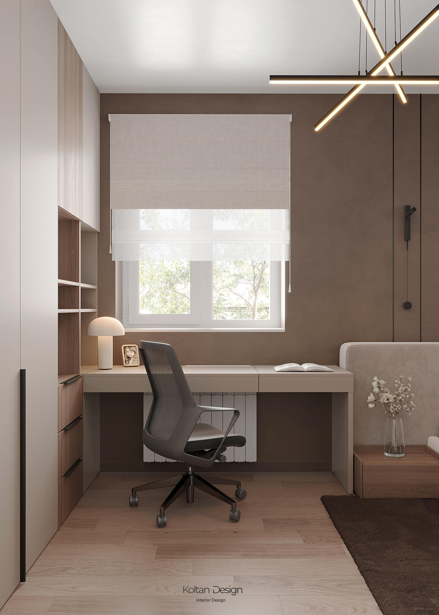 Каждое помещение проработано индивидуально: в комнате сына предусмотрены системы хранения для книг и коллекций, а интерьер комнаты дочери выполнен в отдельной цветовой гамме по её пожеланиям
