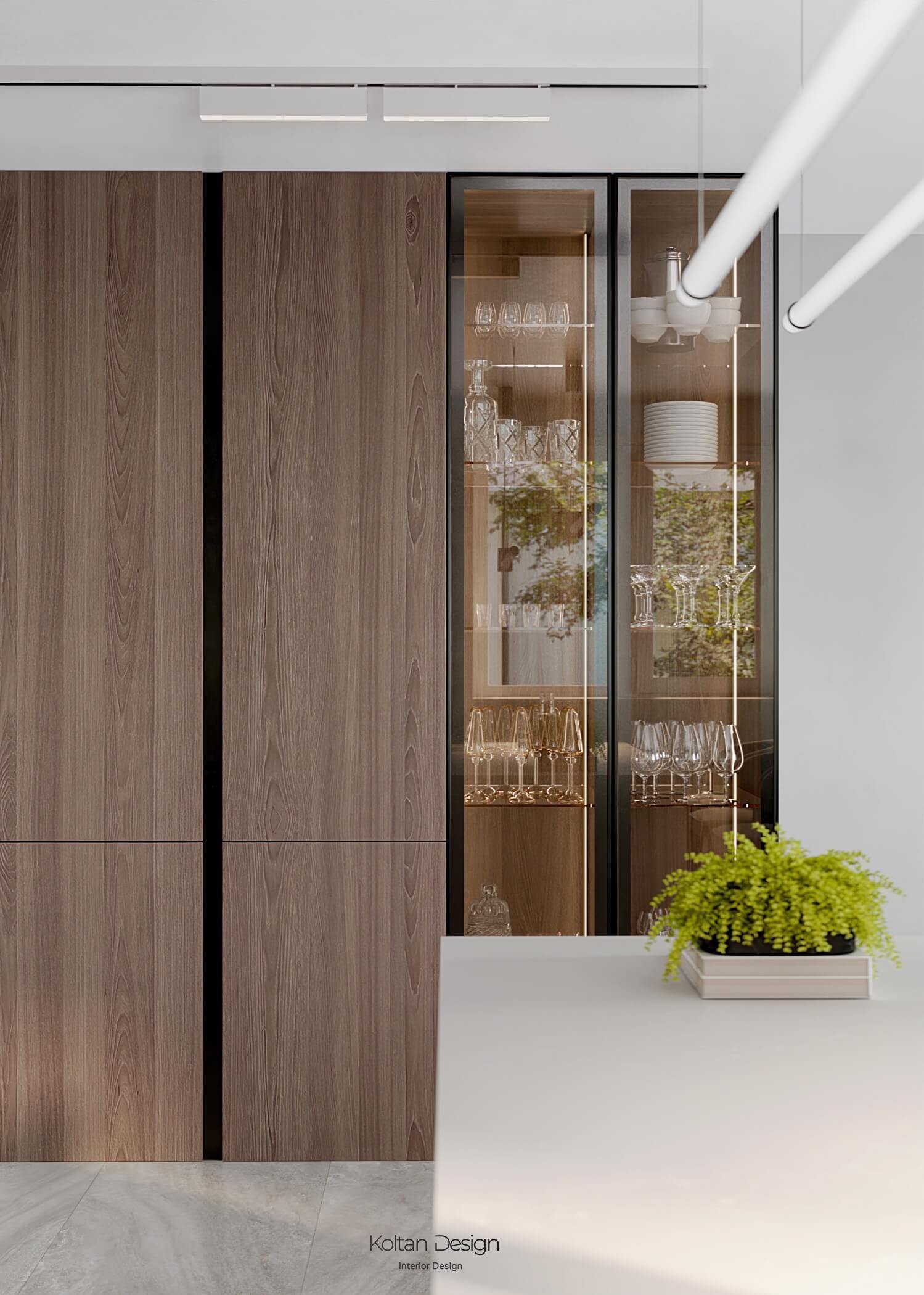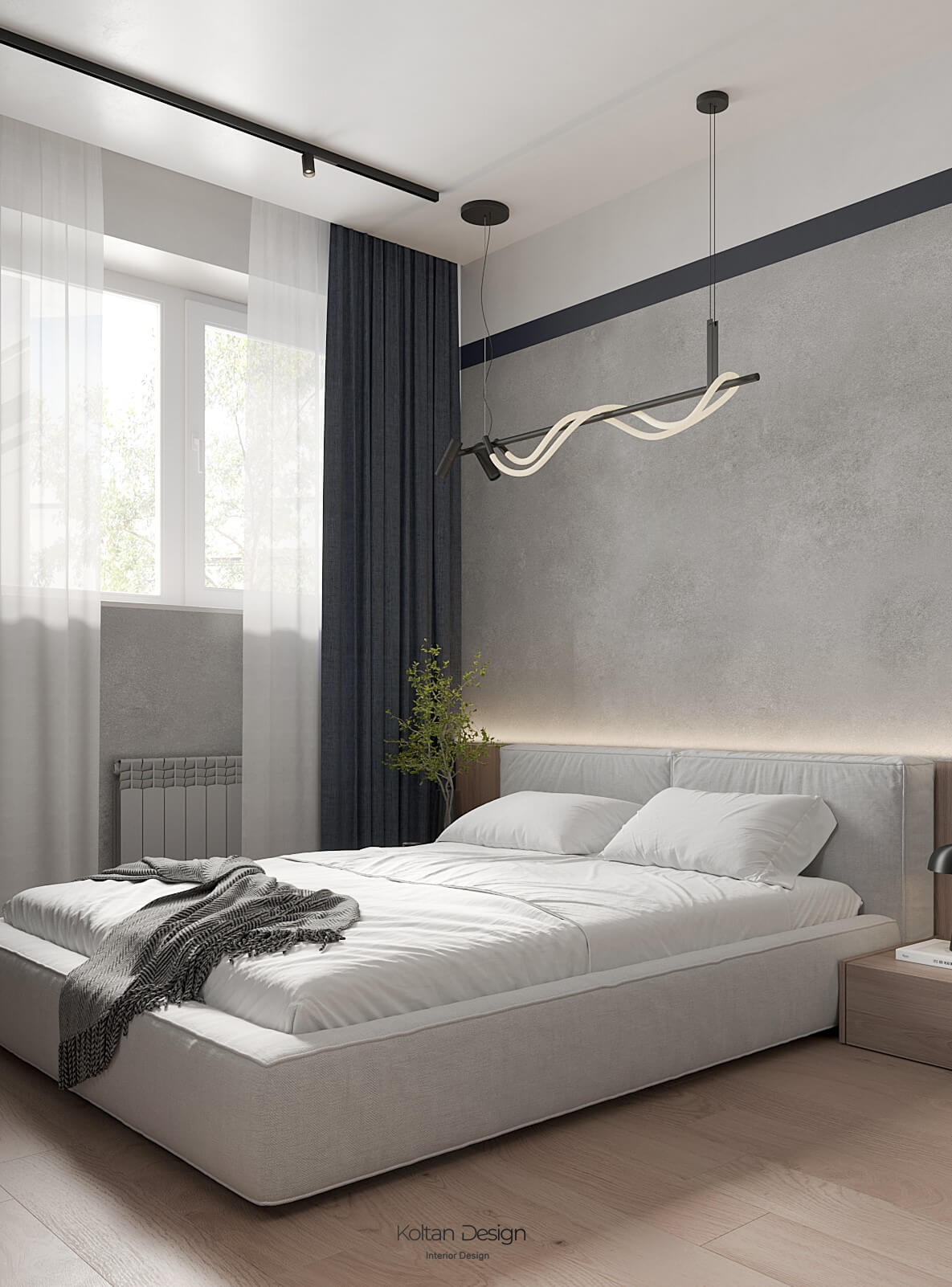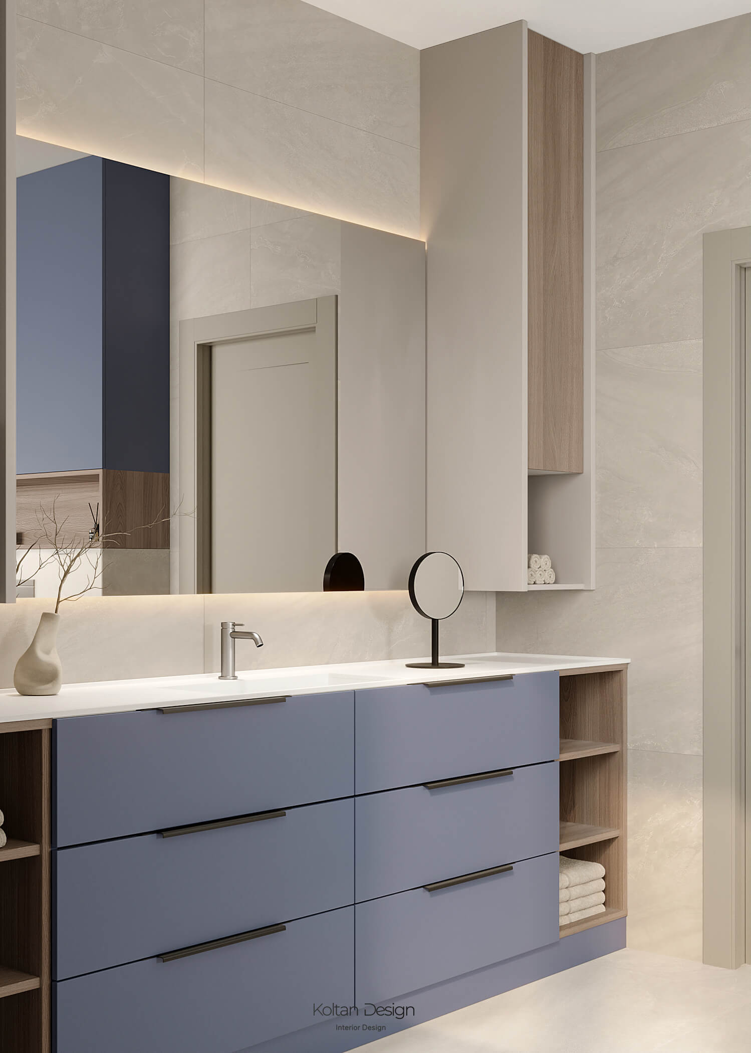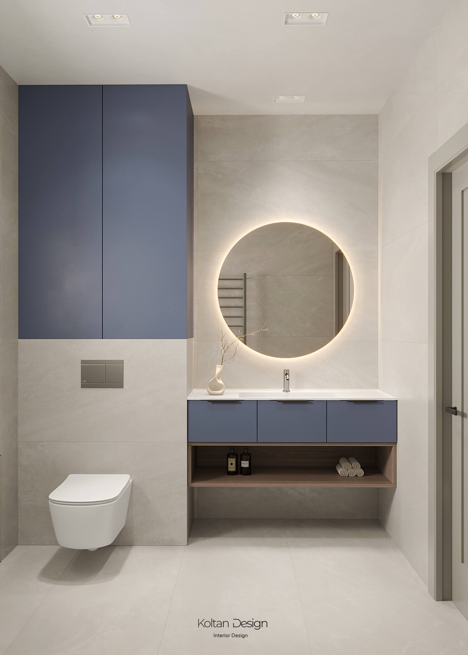 Дом был приобретён уже с готовыми перегородками, однако планировка не соответствовала потребностям семьи. В процессе работы кухня и гостиная были объединены в единое пространство, добавлен кабинет, а на втором этаже из общего объёма сформированы отдельные комнаты с гардеробными и дополнительная детская.Стилистическое решение формировалось в процессе работы: в итоге получился современный интерьер с тёмным деревом и синими акцентами. Основной акцент сделан на фактурах - декоративной штукатурке, текстиле и материалах, без перегруженного декора.