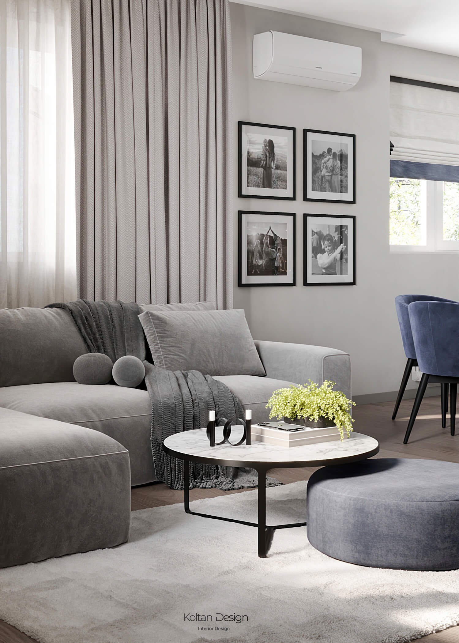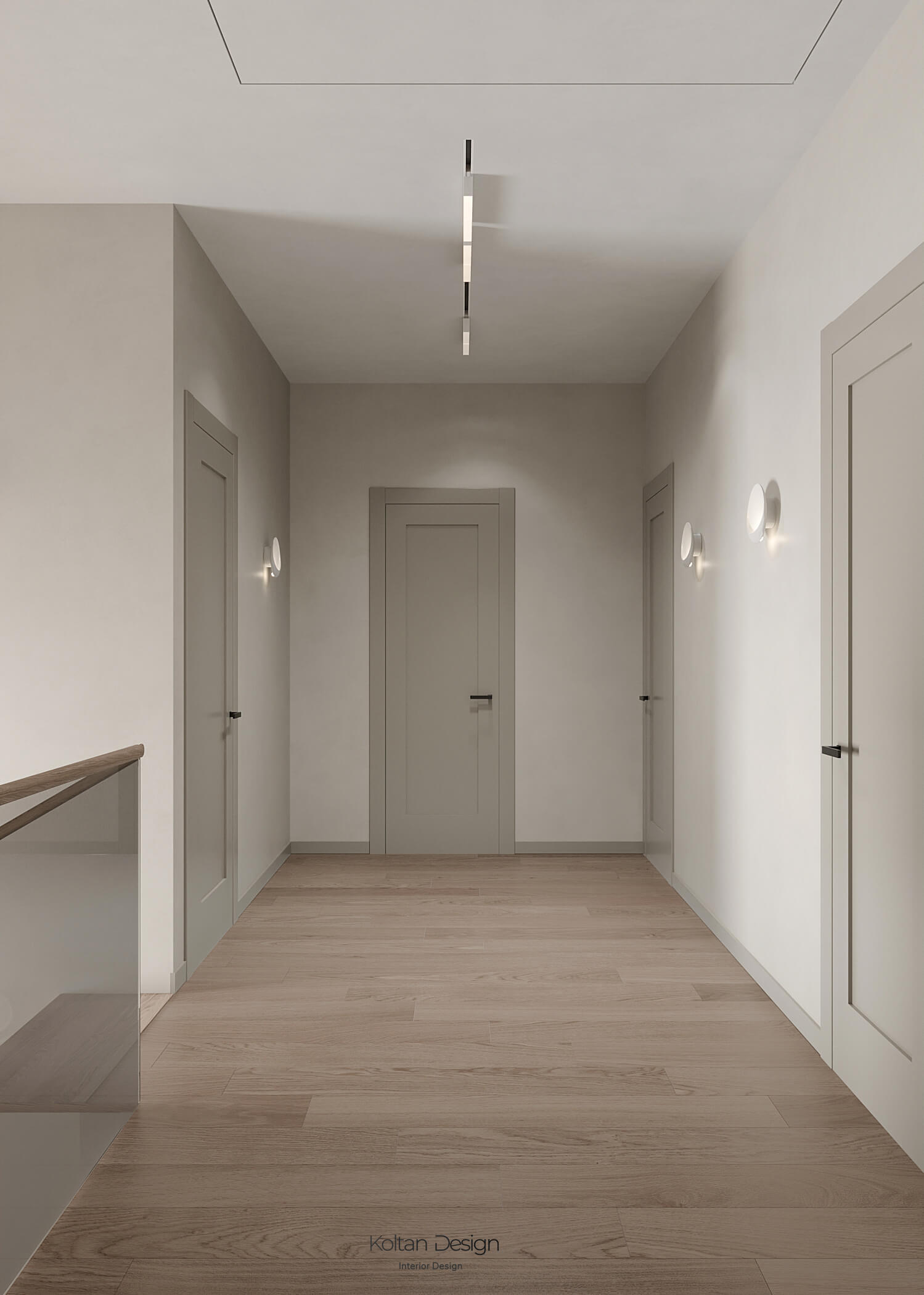 Задача: разработать интерьер двухэтажного загородного дома для семьи с двумя взрослыми детьми. Переработать существующую планировку под образ жизни заказчиков, перераспределить помещения, добавить функциональные зоны и полностью обновить инженерные коммуникации. Интерьер должен был получиться современным, комфортным и отражать характер семьи.