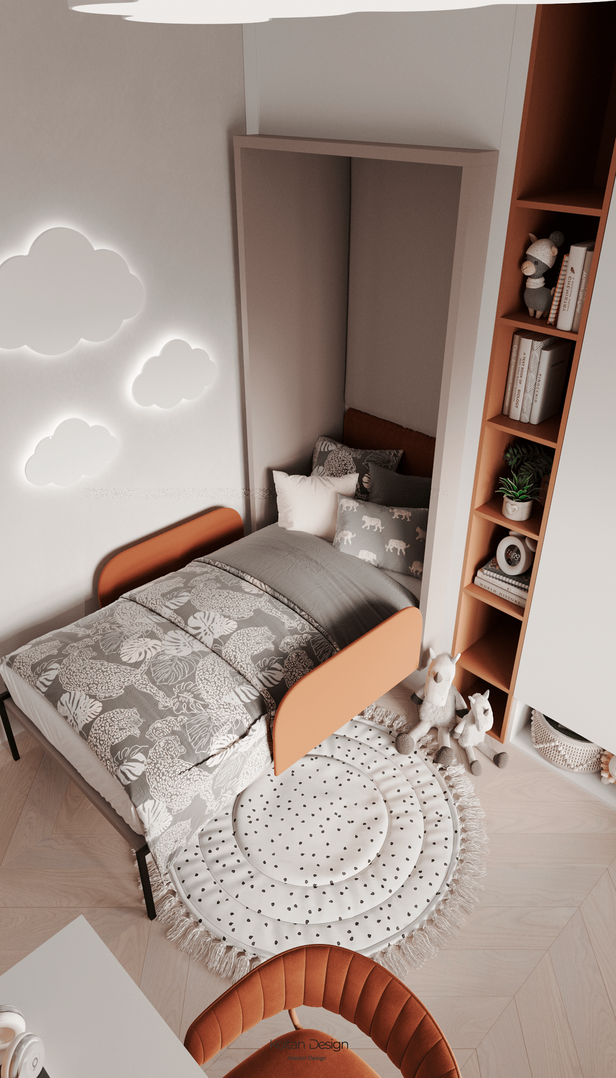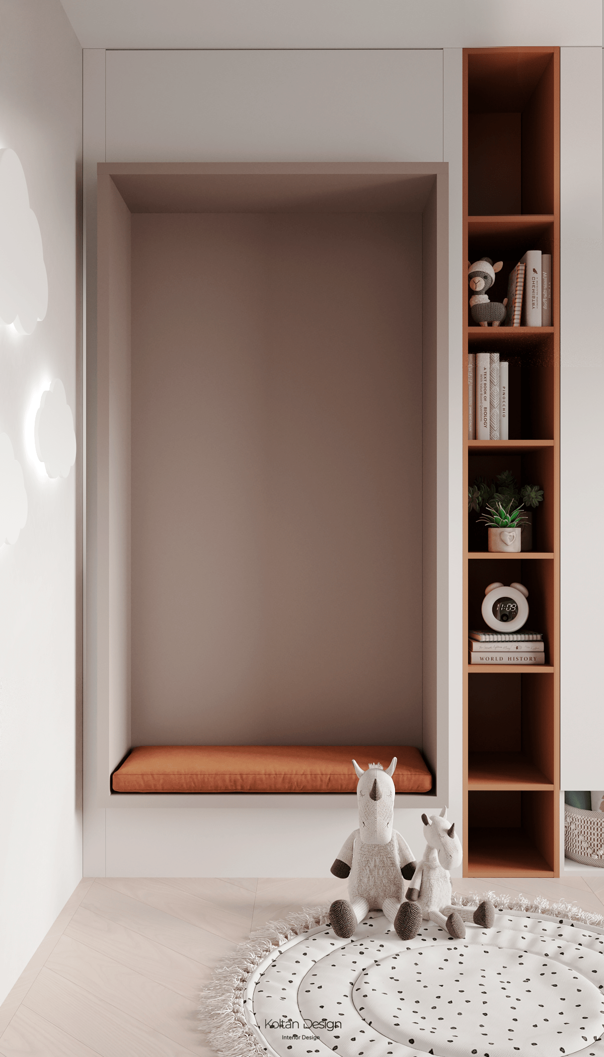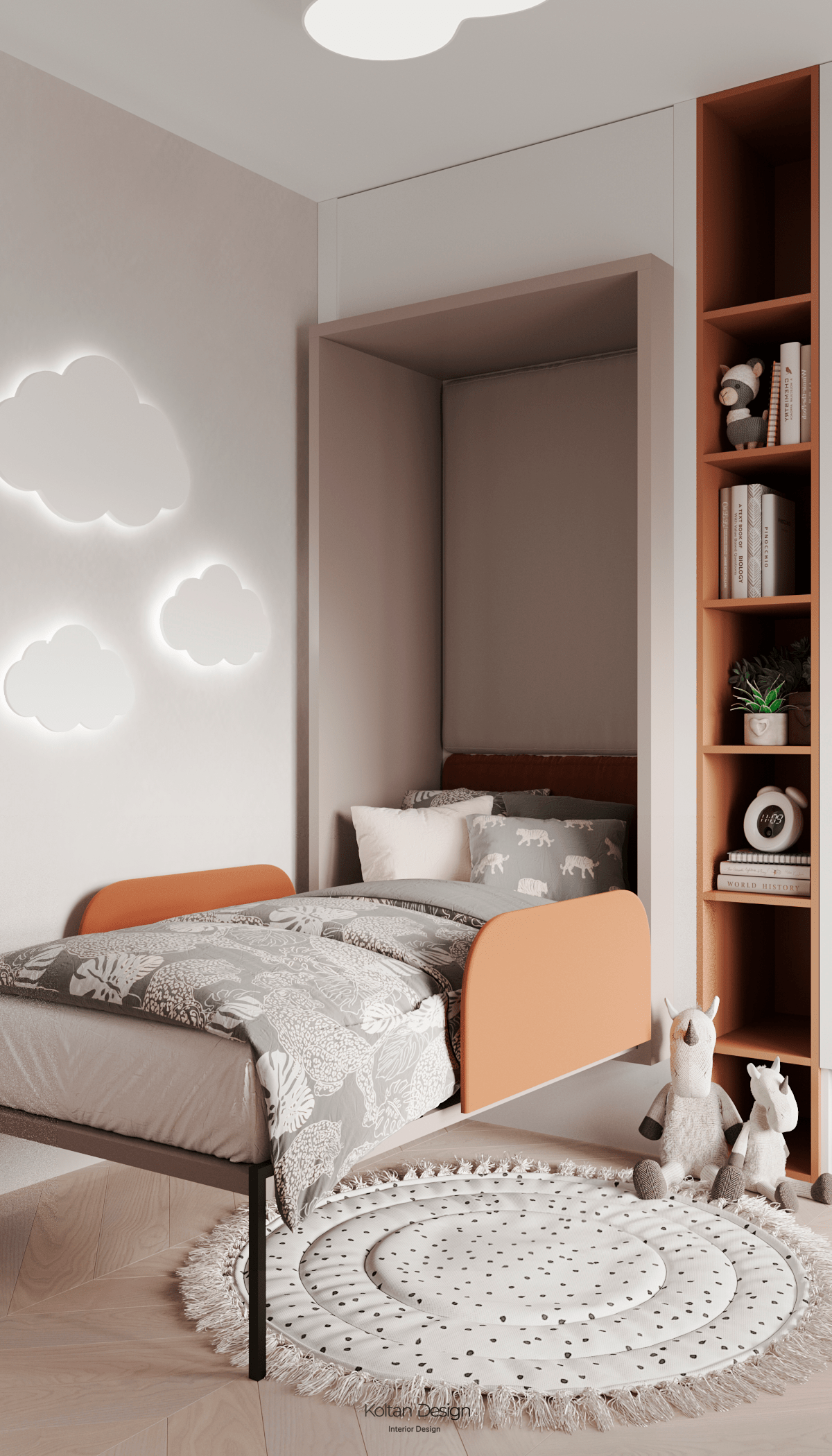 Детская комната выполнена в универсальных оттенках, что делает её подходящей для мальчика и для девочки. Пространство получилось тёплым и уютным благодаря правильно подобранной цветовой гамме, мебели и текстурам, которые создают атмосферу уюта и покоя, идеально подходящую для отдыха и игр.