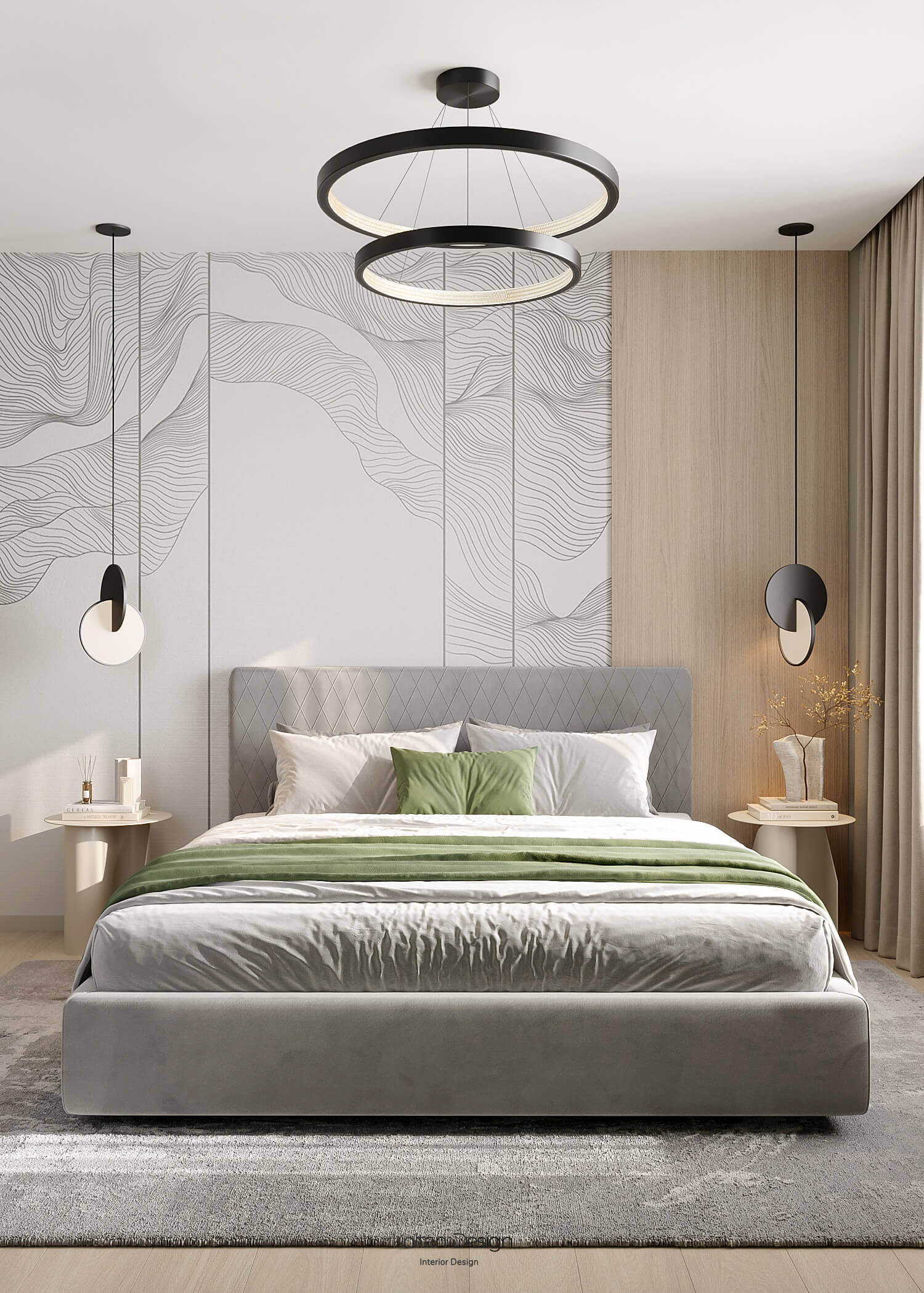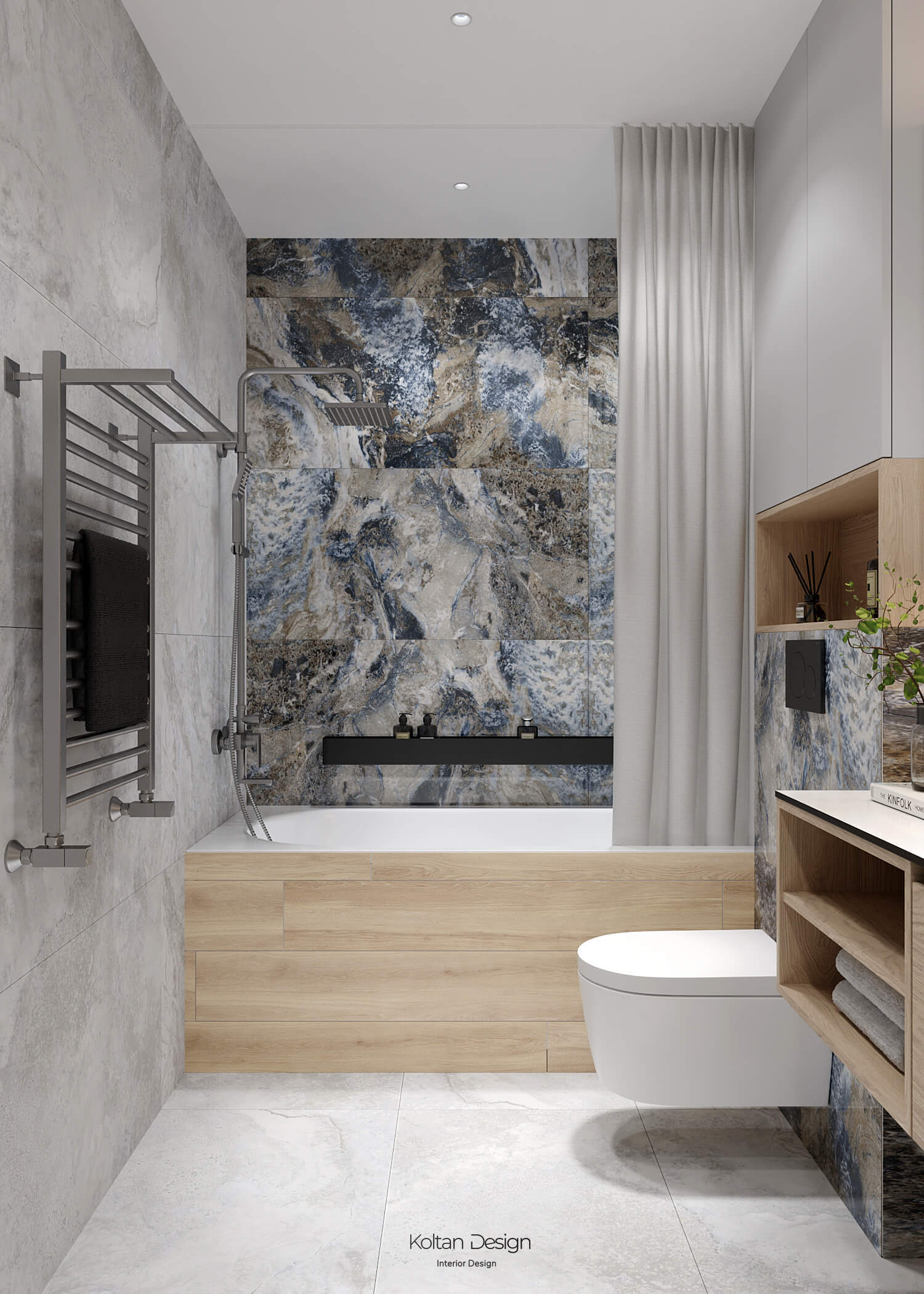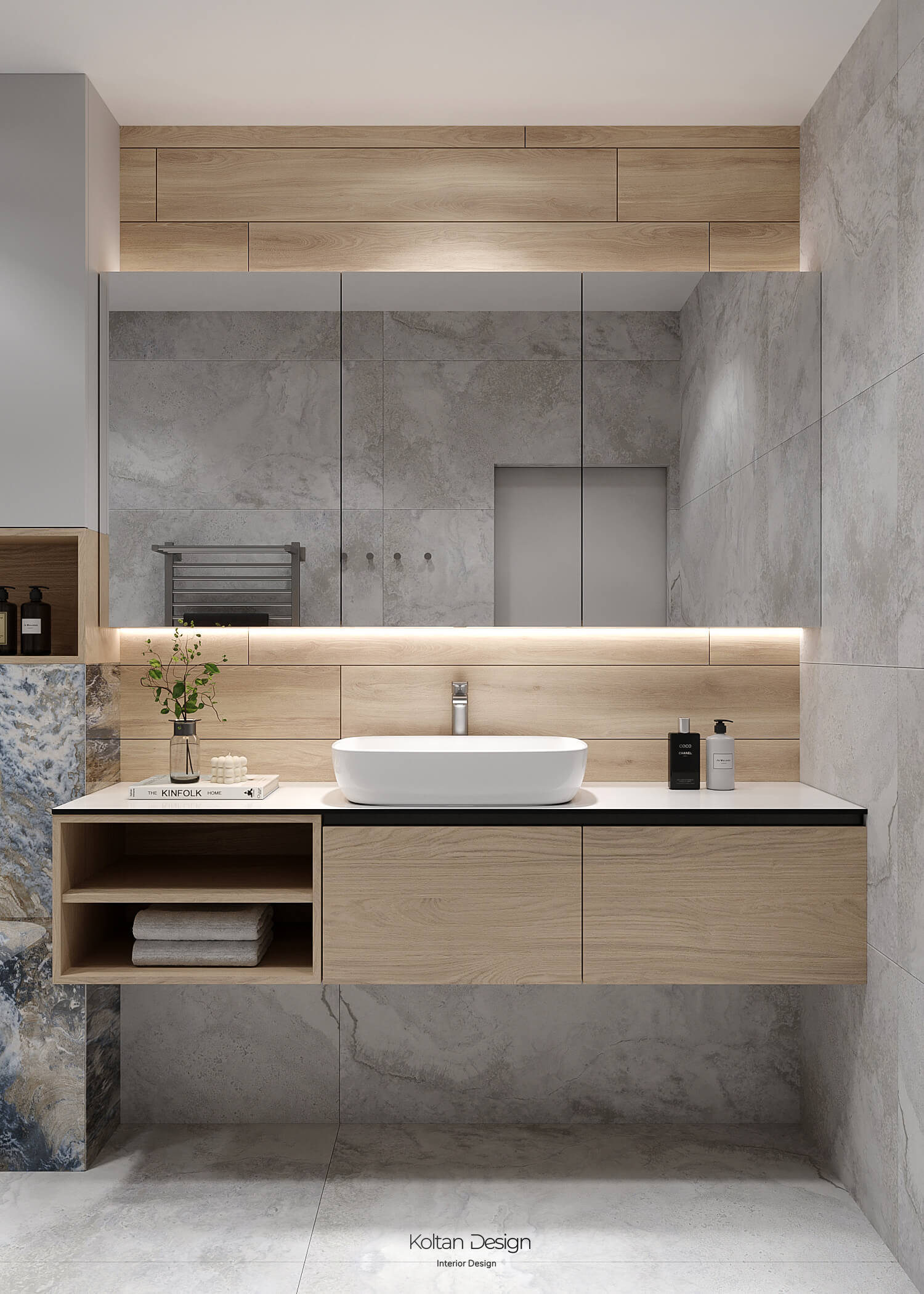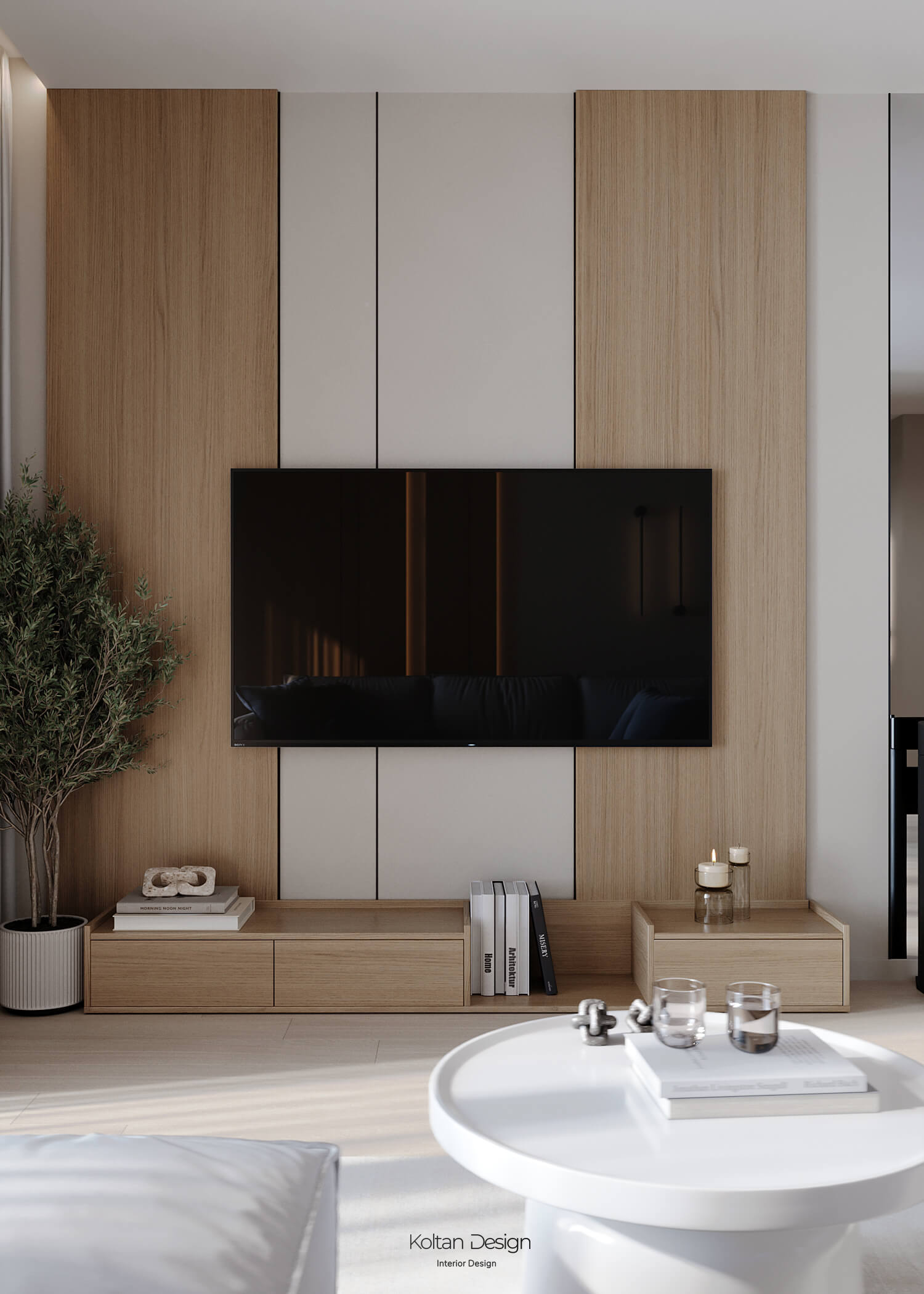 Просторная квартира идеально сочетает стиль, комфорт и практичность для молодой семьи с двумя детьми. Интерьер выполнен в светлых тонах с элементами дерева и акцентами синего цвета, выбранного хозяйкой.