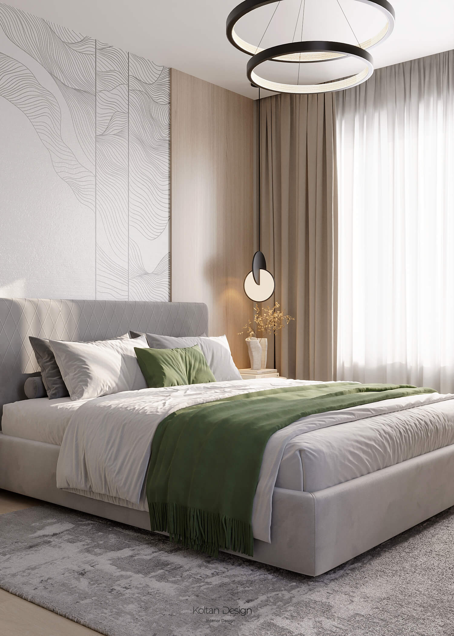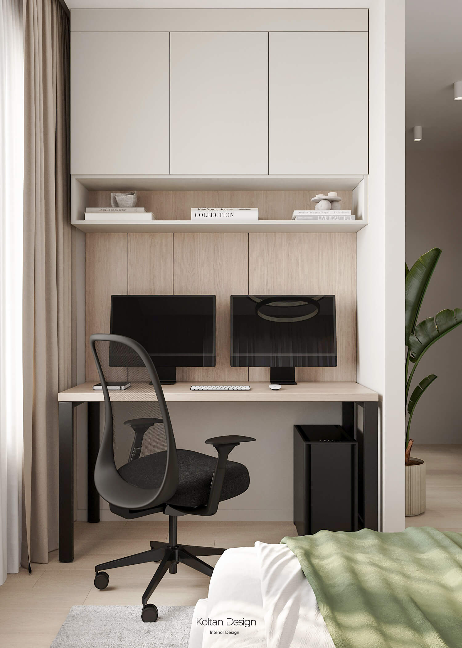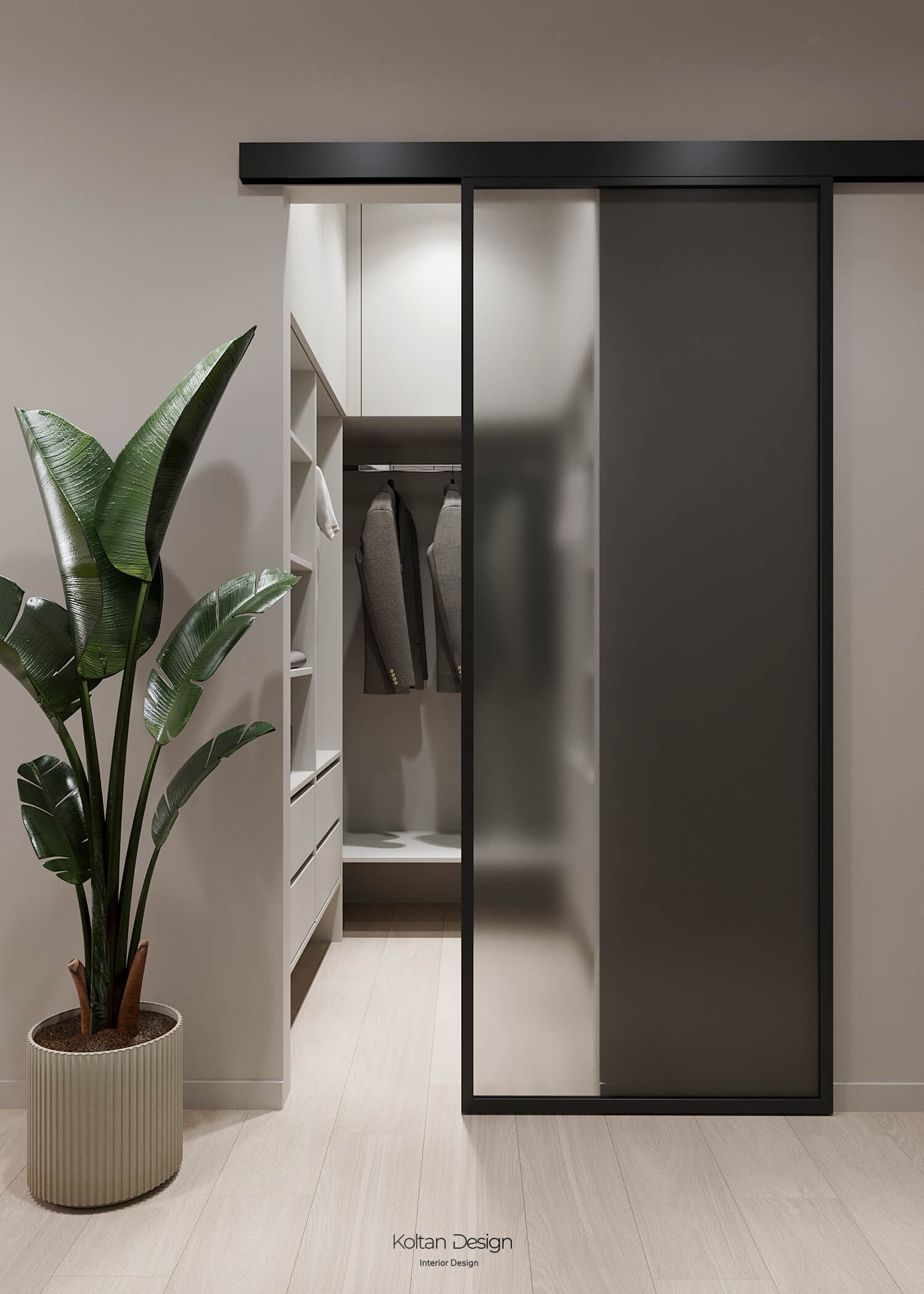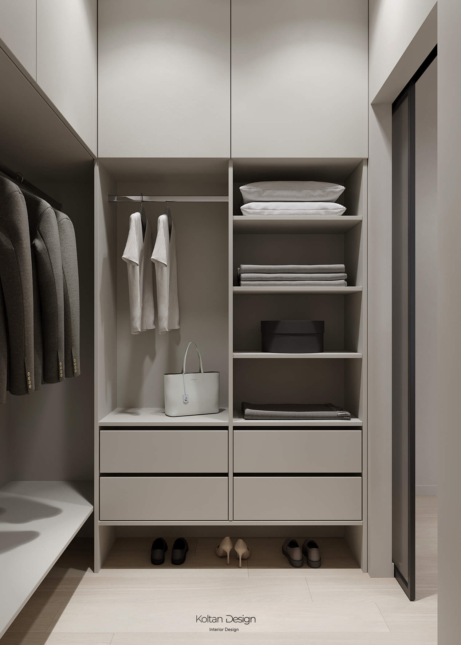 В спальне для родителей предусмотрено дополнительно рабочее место для хозяйки, а отдельный гардероб помогает поддерживать порядок и предоставляет достаточно места для хранения.
