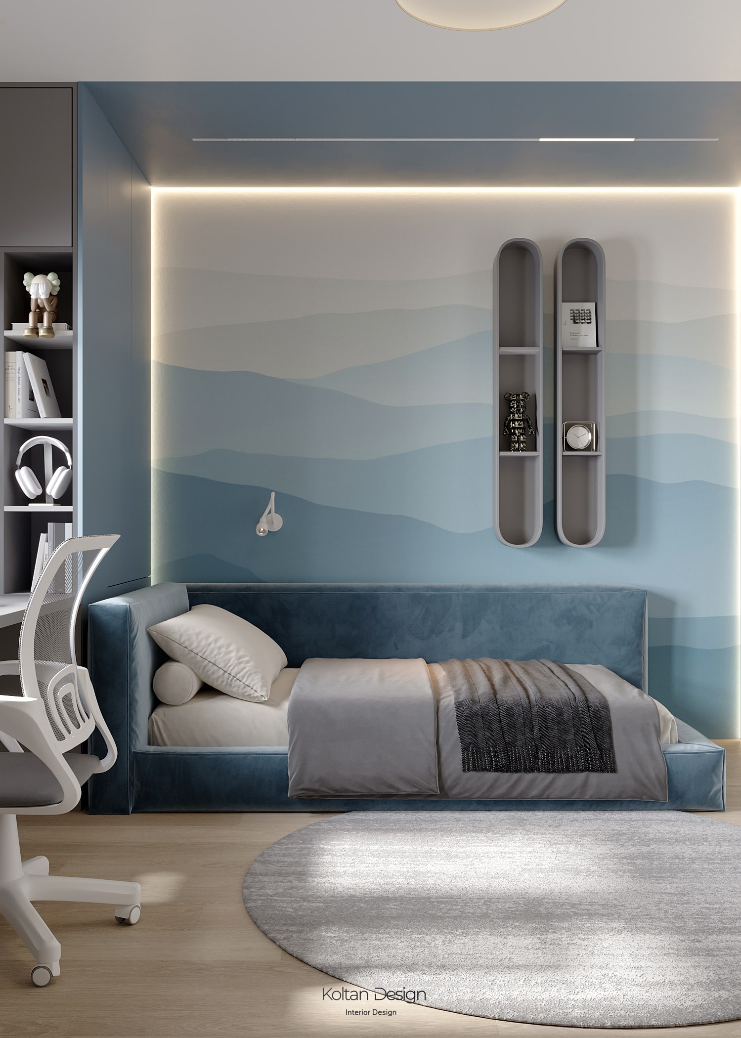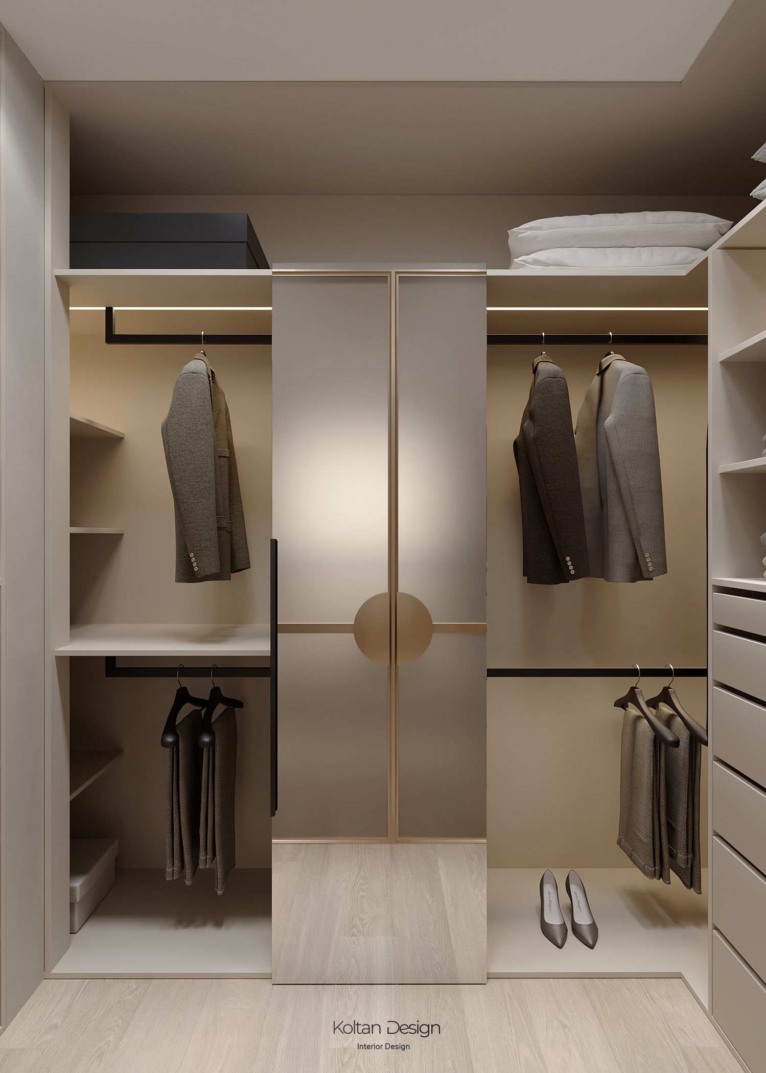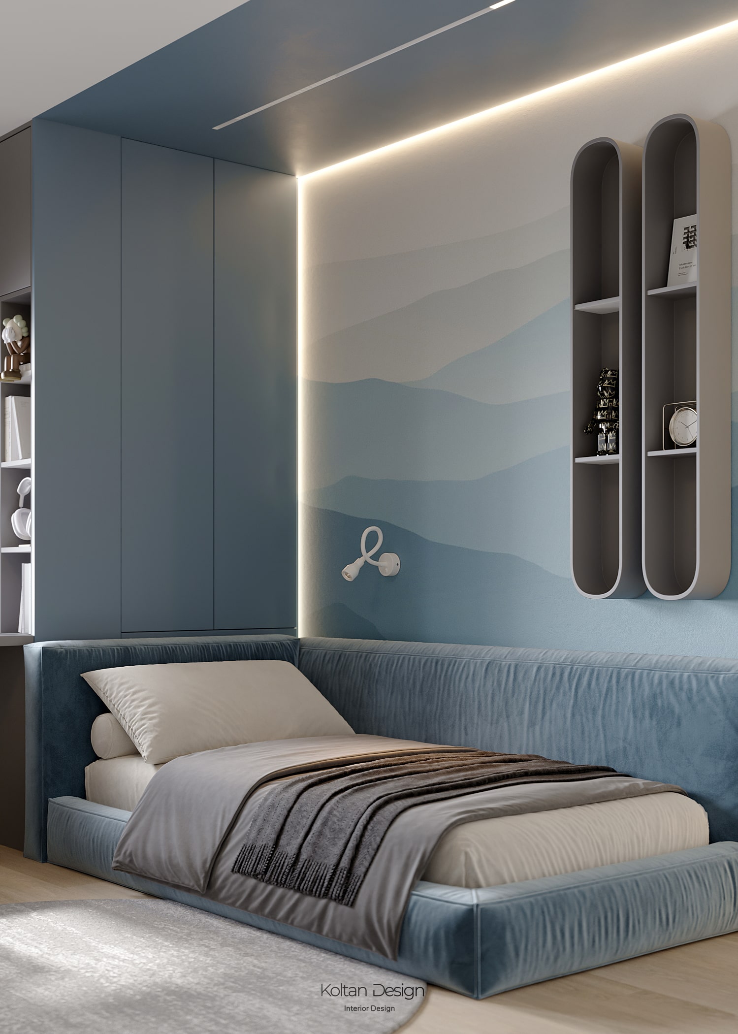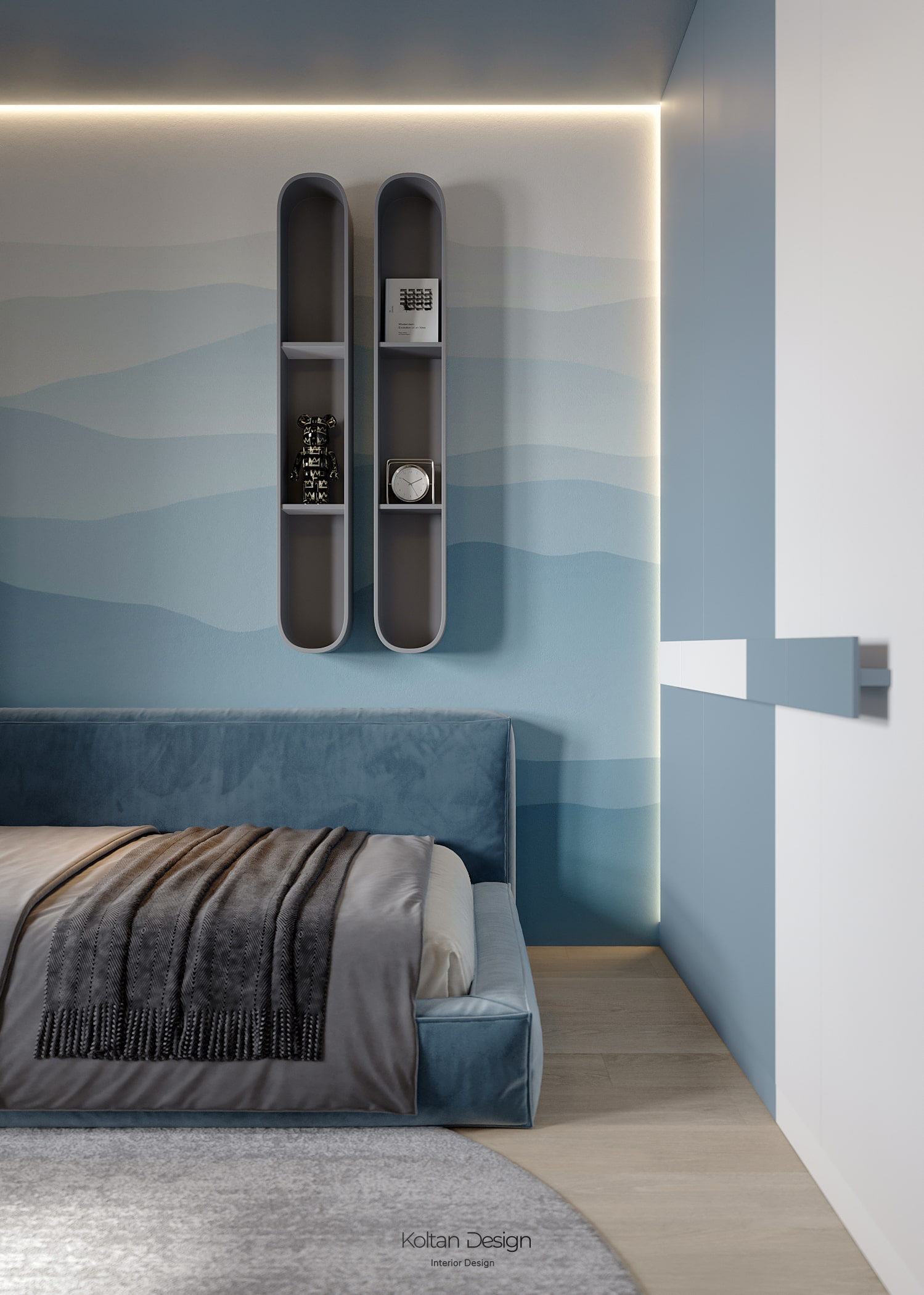 Квартира для семейной пары с подростком продумана так, чтобы каждый уголок был удобен и функционален. Особое внимание уделено созданию гибкости пространства: кухня и гостиная могут быть изолированы друг от друга с помощью стильной перегородки, что позволяет адаптировать пространство под различные нужды семьи — от уютных ужинов до спокойного отдыха.