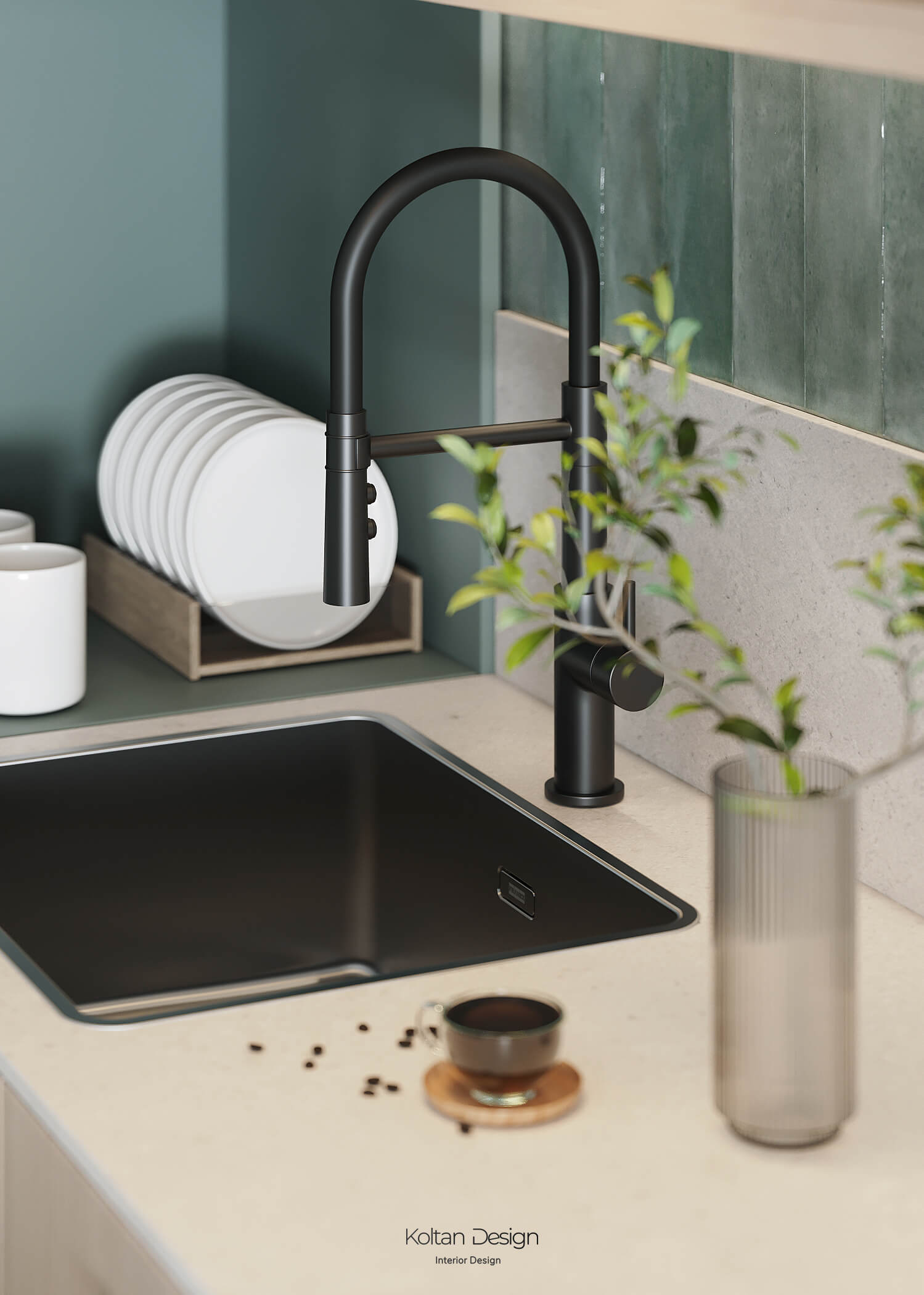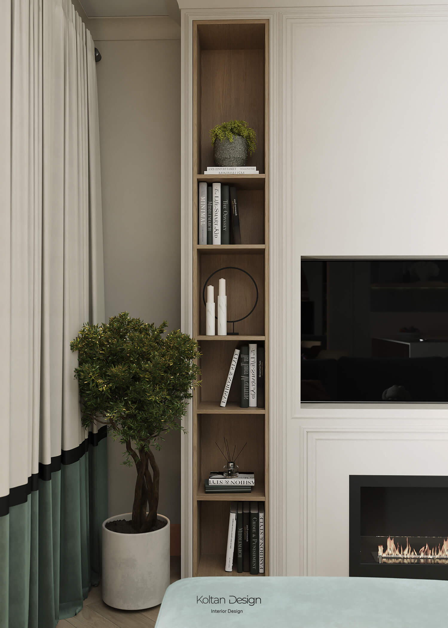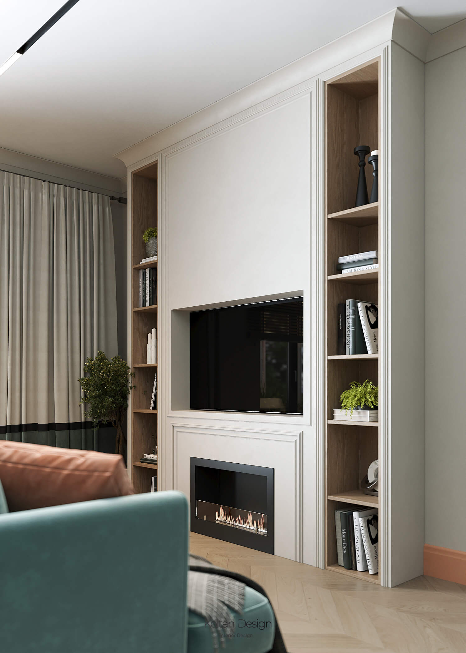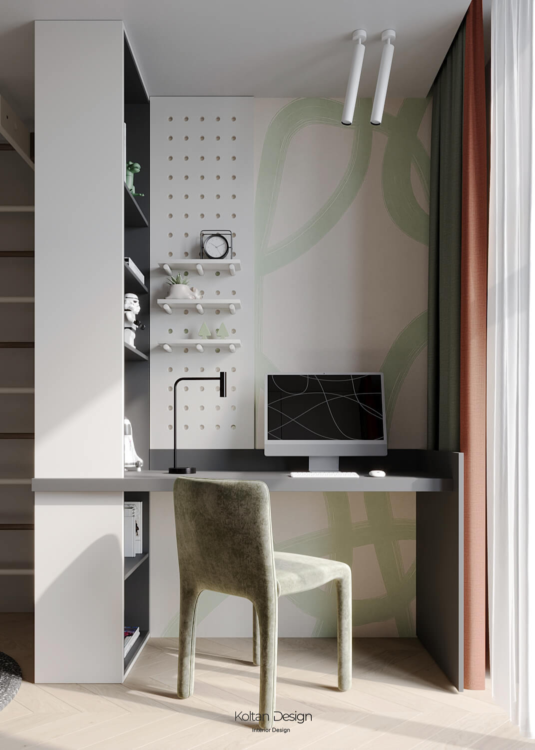 Эта квартира — идеальный дом для смелой и неординарной семьи, которая не боится ярких акцентов и сочетания насыщенных цветов. В зоне гостиной, объединенной с П-образной кухней и обеденной зоной, создано пространство, которое отлично сочетает функциональность и эстетику. На кухне сформирована стене с пеналами, где встроена вся техника, а за подъемными фасады организована скрытая столешница, что позволяют сохранять чистоту и порядок, не нарушая визуальной гармонии кухни. Яркие и смелые цвета, акцентные элементы создают живую атмосферу, не перегружая пространство. Квартира сочетает элементы классики с современными решениями, что делает интерьер стильным, но при этом уютным и гармоничным.
