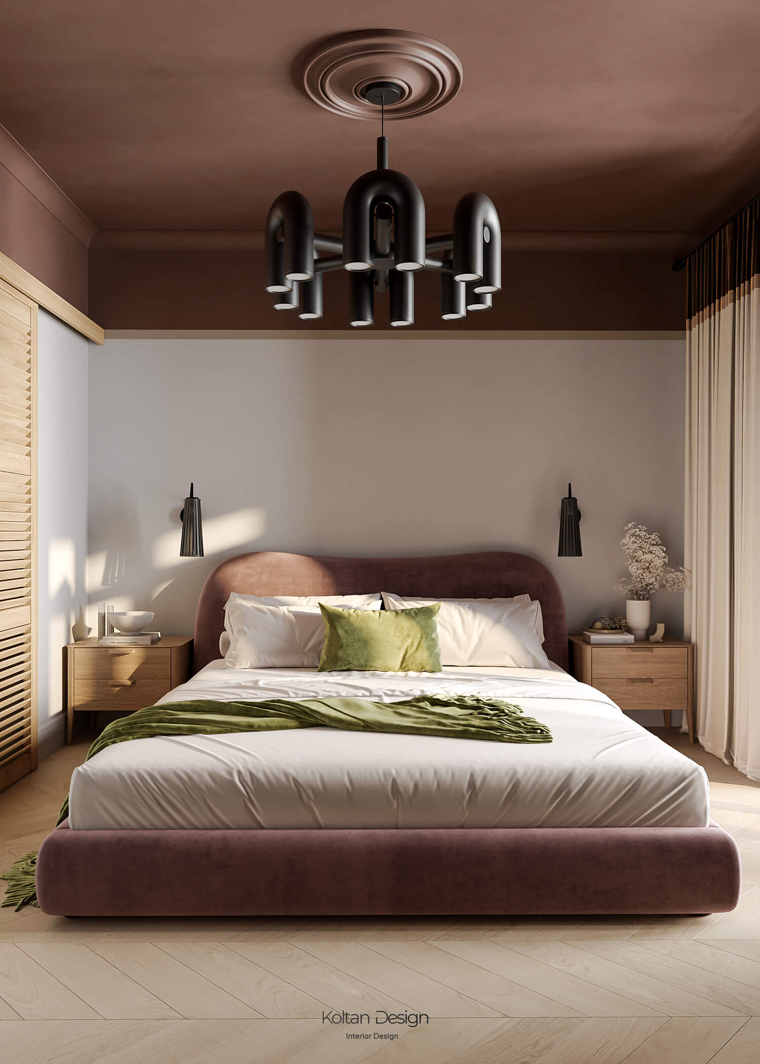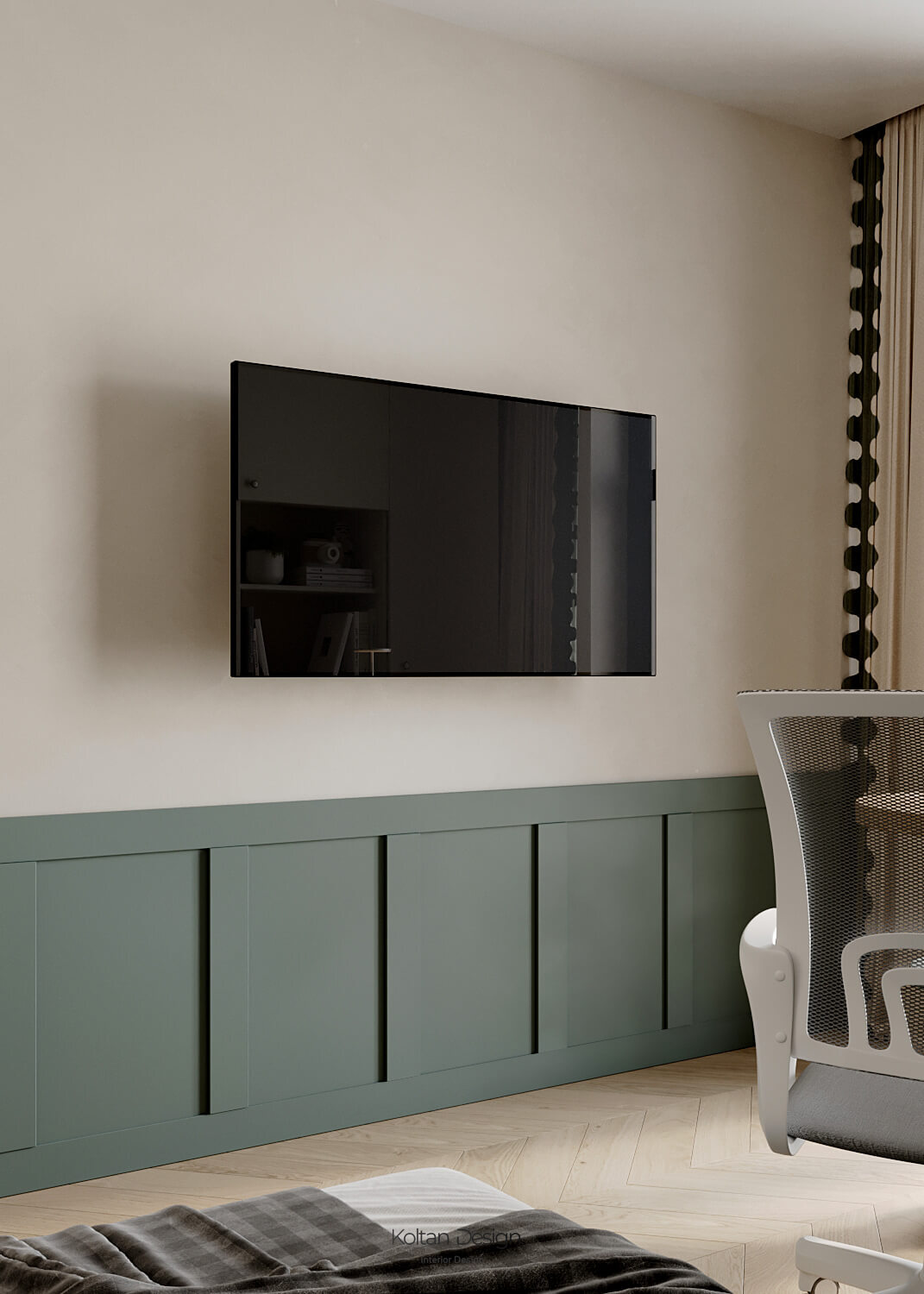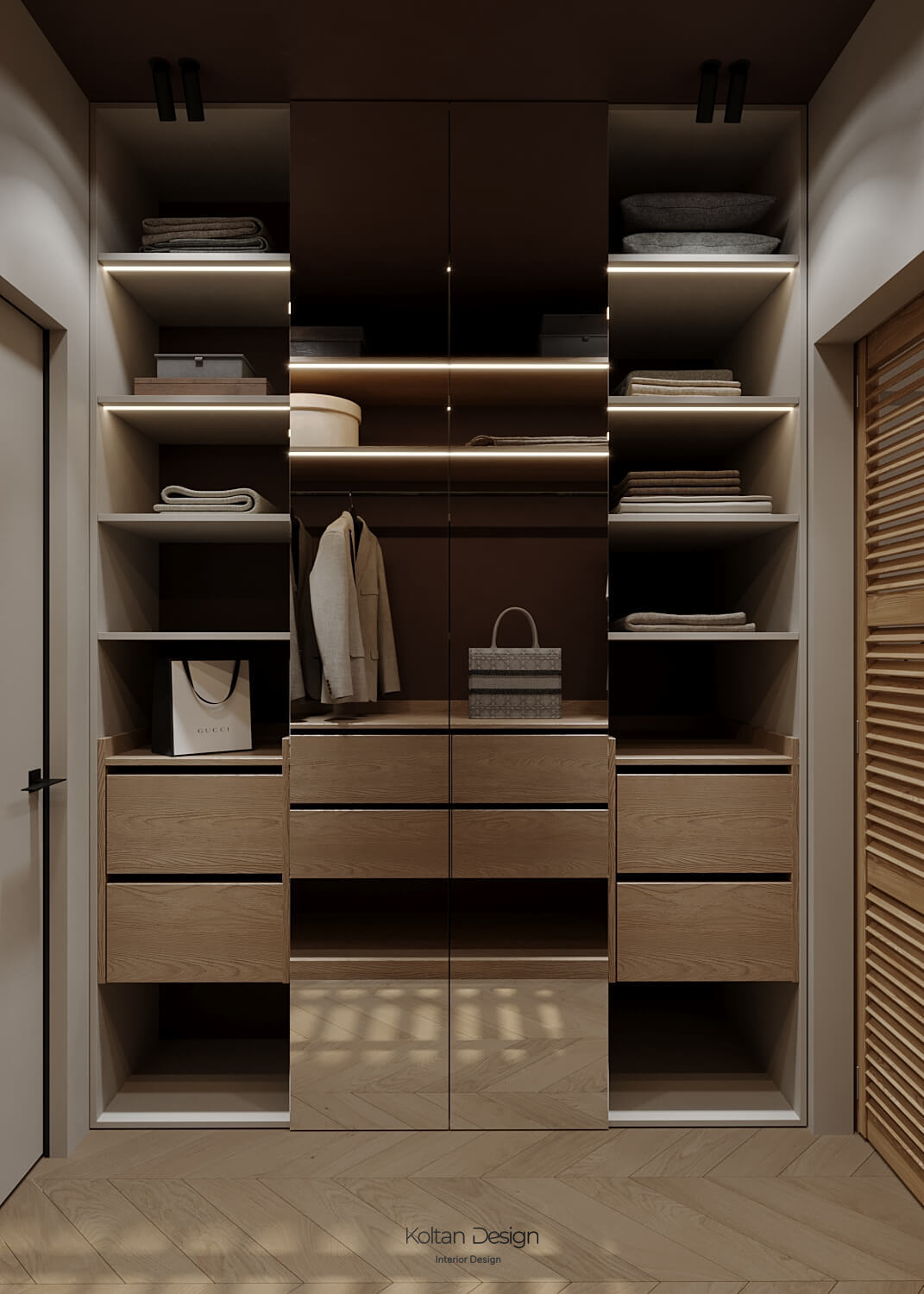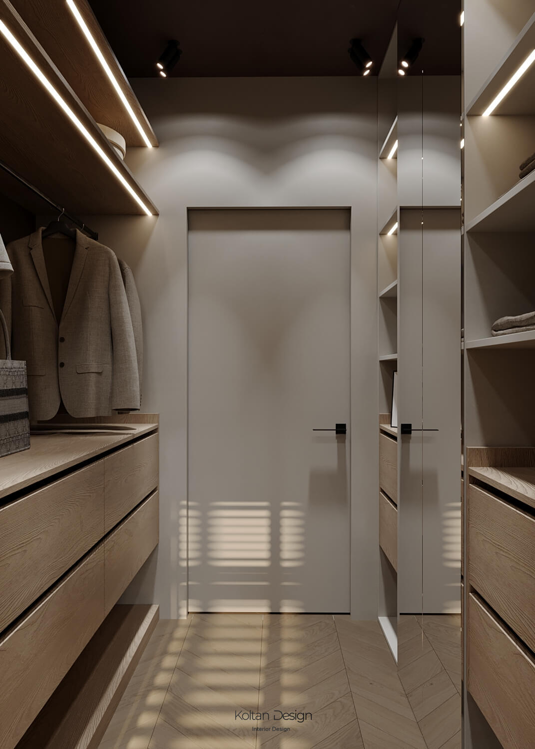 В мастер-спальне для хозяйки организовано рабочее место и выход в гардеробную, разделенную на мужскую и женскую части, а также в душевую, обеспечивая приватность и удобство. Вторая ванная комната полностью выделен для детей и гостей. Для детей предусмотрены две комнаты с уникальным дизайном: одна для девочки, другая для мальчика школьного возраста.